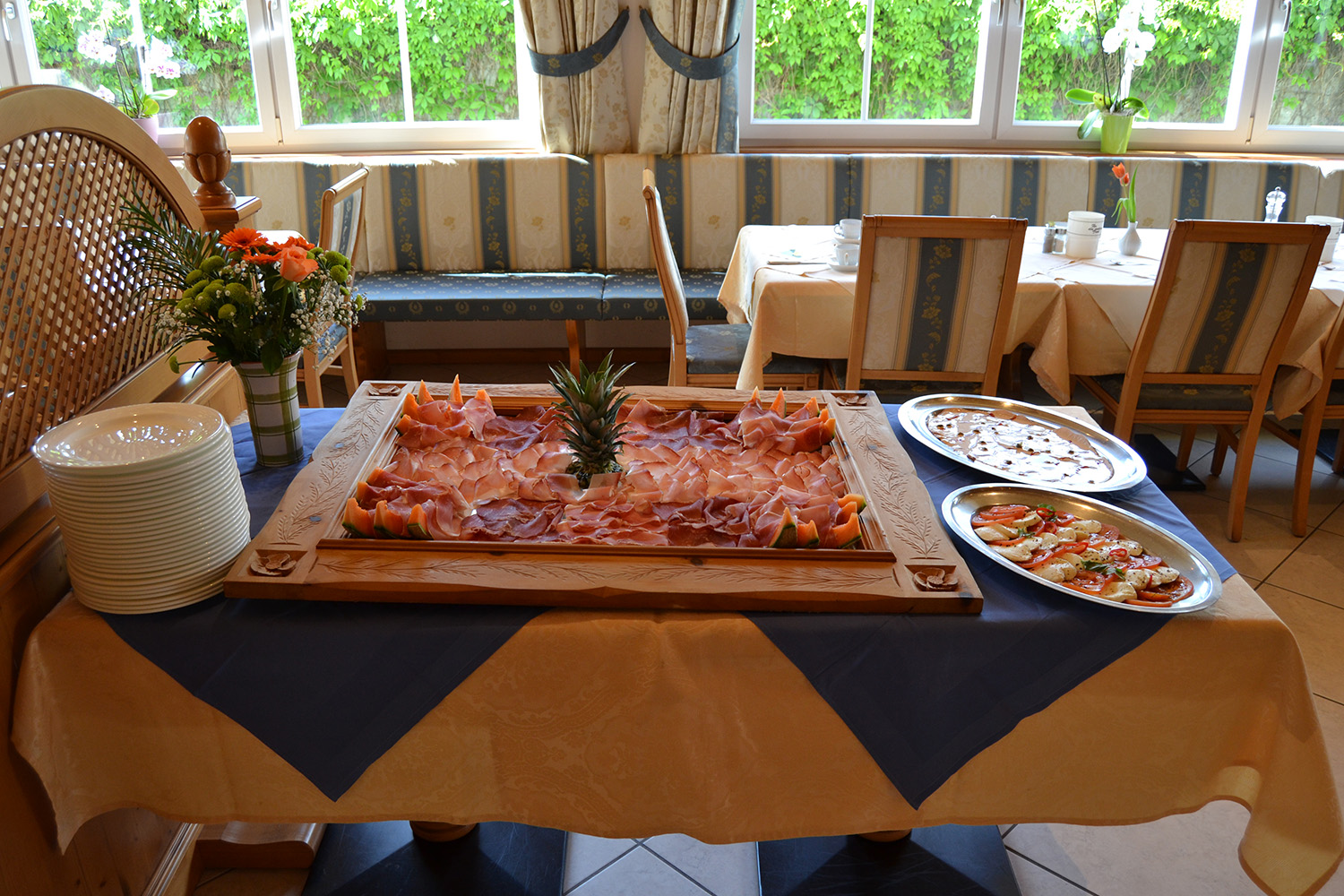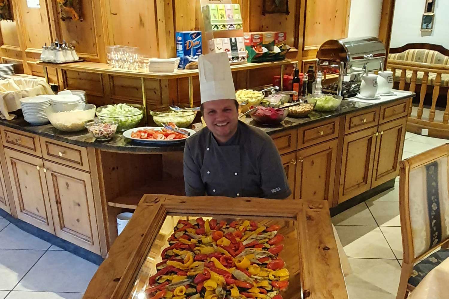Unsere Küche verwöhnt Sie mit Südtiroler und italienischen Spezialitäten, dazu ein reichhaltiges Salatbuffet! Wir verwenden ausschließlich hochwertige, frische und regionale Zutaten. Auf Wunsch erhalten unseren Gästen ein vegetarisches oder glutenfreies Menü.